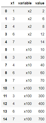 pd.melt(df3, id_vars=["x1"])