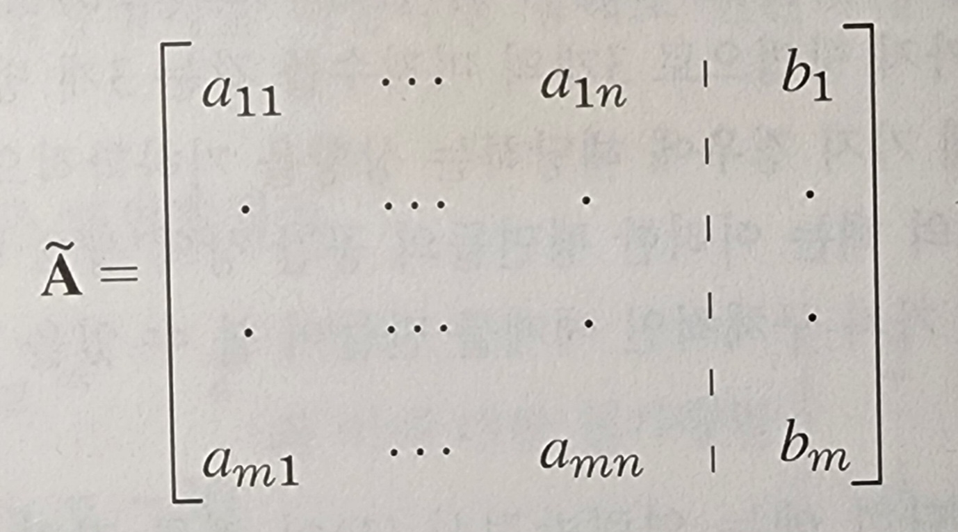 이 때 벡터 b를 행렬 A의 오른쪽에 붙인 행렬을 첨가행렬(augmented matrix)이라 한다.